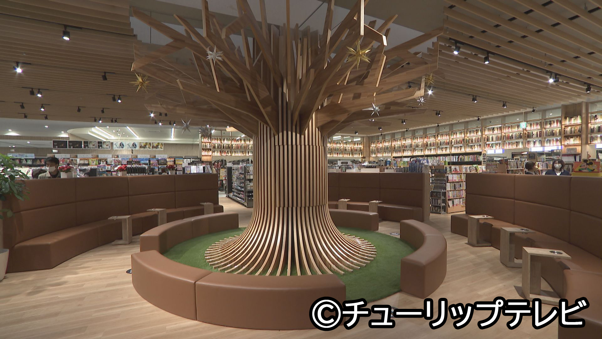シンボルツリーの周りには児童書が1万2000冊もありベンチに座って読むことができます