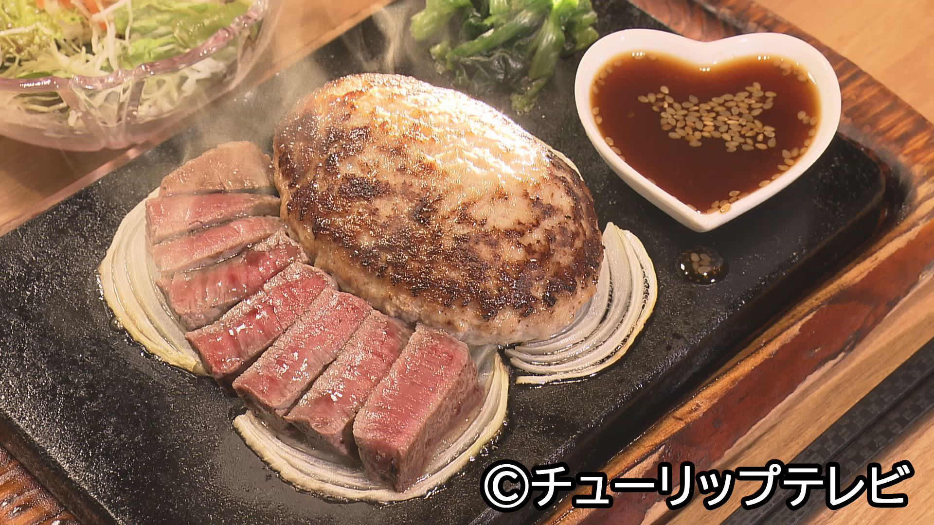 ハンバーグとステーキが一緒に食べられる贅沢な逸品