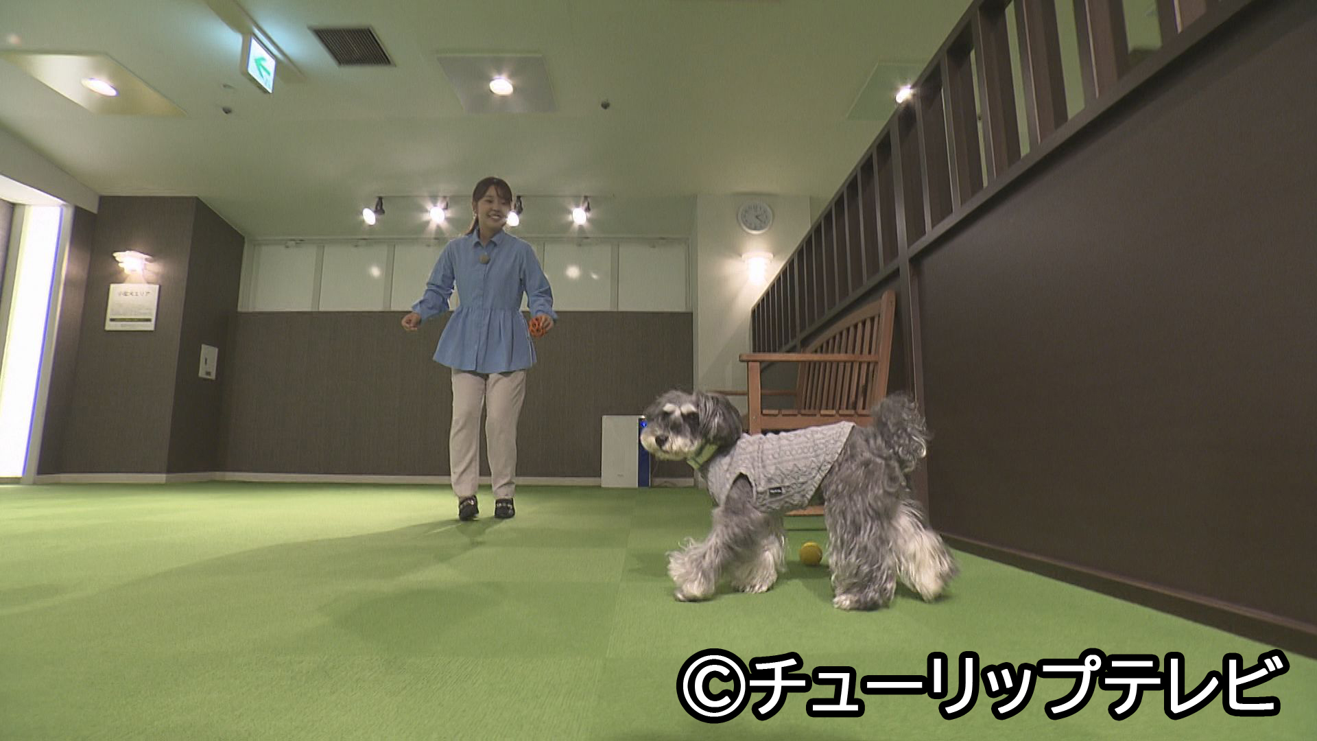 嘉藤アナがミニチュアシュナウザーのマノンちゃんと一緒にレポートします。