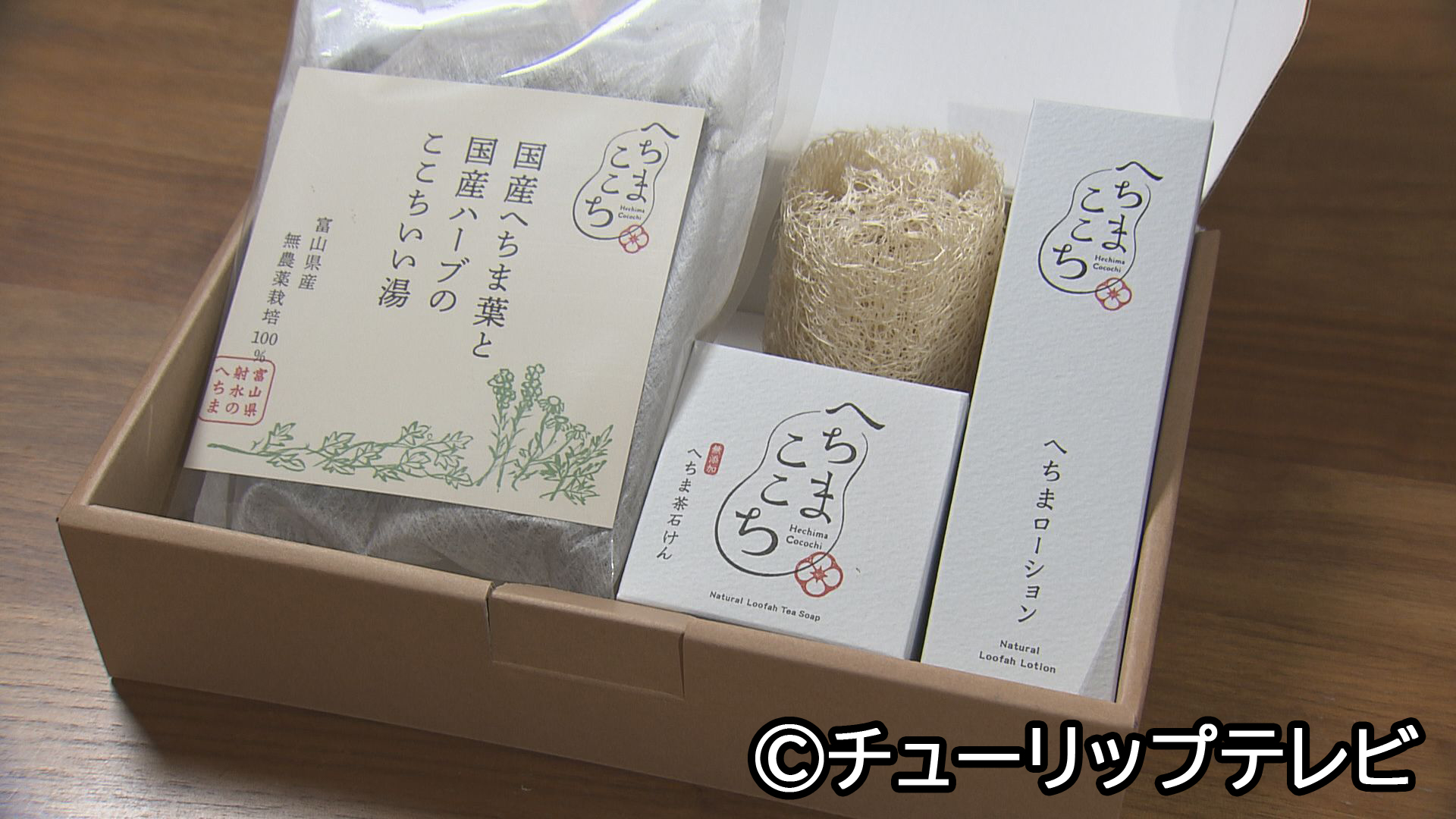 射水市旧大島町の特産品であるへちまを使った商品を紹介。
