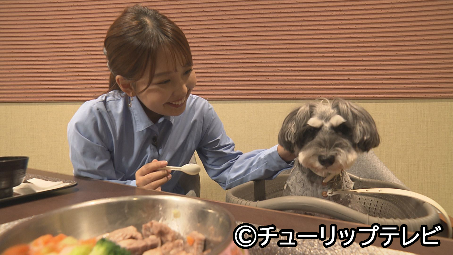 嘉藤アナがミニチュアシュナウザーのマノンちゃんと一緒にレポートします。