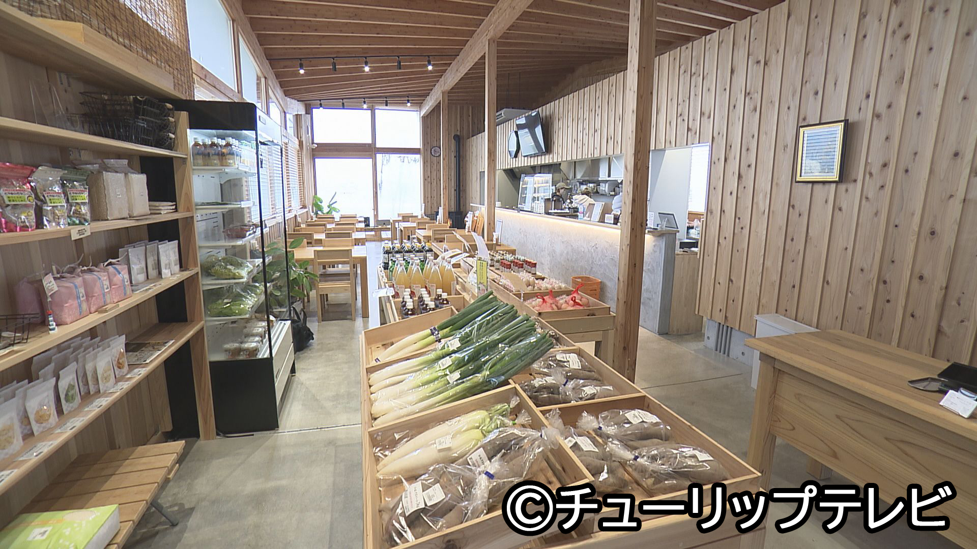 新鮮野菜や地元の加工品の直売もあるカフェ。
