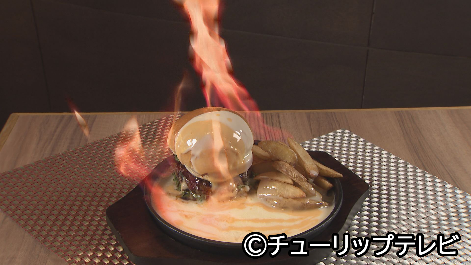 さらに人気なのは文字通り炎に包まれたチーズバーガー!