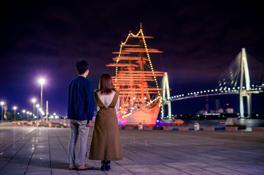 普段の昼のクルーズとは趣が違う「ナイトクルーズ」。 帆船海王丸、新湊大橋、遠くに煌めく工場群、川の両岸に停泊する漁船や立ち並ぶ家々などが、様々な灯りに彩られ、幻想的な夜の港の景色を作り出します。 潮の香、心地よい夜風を感じながら、約1時間の船旅をお楽しみください。