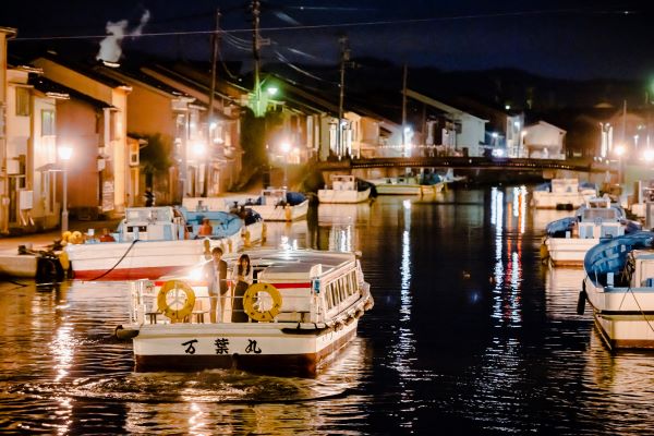 ノスタルジックな港の夜景色を船で楽しむ。